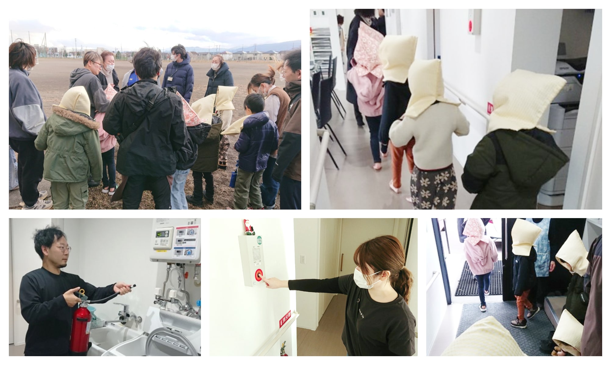 ぽらりすは12月1日に実施し、事前告知をせず本当に地震と火災が発生した想定で避難訓練を始めました。部屋中に響き渡るサイレン音に涙するお友達もいましたが、職員の指示をよく聞き、身を守る姿勢をとって乗車しています。避難先の樽川中学校グラウンドまで、10分4秒で避難することが出来ました。終了後のお作法タイムでは、『おかしもち(押さない・駆けない・しゃべらない・戻らない・近寄らない)』の確認を行い、自身の行動の振り返りを真剣な表情で行っています。防災意識を高めるきっかけになれば幸いです。