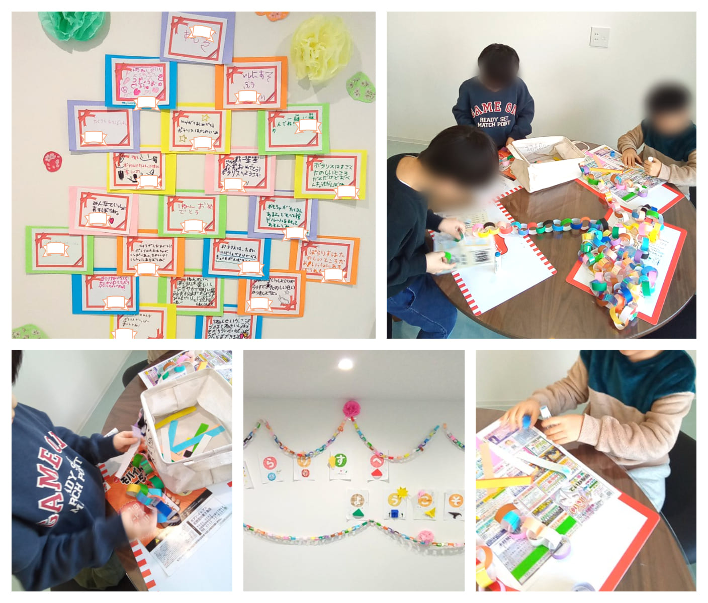緑苑台のぽらりすでは、3月に入ってから「新しい1年生が安心してぽらりすにこられるように」というテーマで話し合いを始めました。子供たちからは「飾りつけをしたらいいんじゃない?」「一緒に楽しく遊んだらいいよ」「歌を歌うのは?」「スイッチ2で遊ぶのは・・・だめだよね・・・」などと、たくさんの意見が出てきました。その中から、ぽらりすの活動に合わせて実現できるものに絞ってもらい「飾りつけ」「ぽらりす案内」「名札をつける」「メッセージカードを書く」「楽しく遊ぶ」という5つに決まり、準備を進めています。