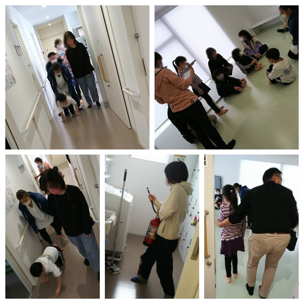 「おやつ前の時間に大きな音がなります。『火事だ』と言われたら静かにして先生のお話をしっかり聞いてください。姿勢を低くして手で口を抑えて逃げましょう。」と伝えてから皆で練習をしています。